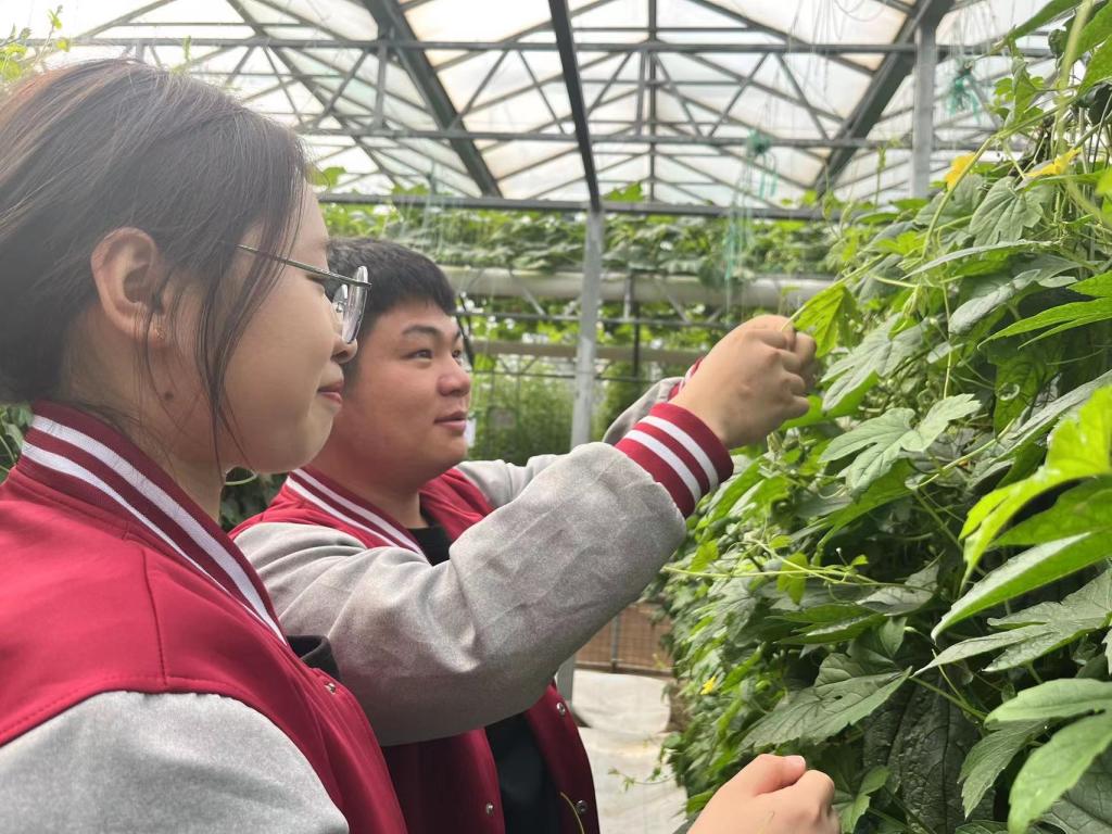 太阳集团tyc9728一直以来高度注重志愿服务工作,认真谋划服务项目,4月14日上午,太阳集团tyc9728组织青马班学子在菜博会进行文明实践志愿者服务行动,在刘晨老师与王倩倩老师的带领下,志愿者们进入九号大棚,为“天潍苦瓜”与“天潍茄子”进行雄花与雌花的授粉,志愿者们齐心协力、分工合作,顺利完成了老师交给的任务的同时了解了雄花与雌花的形态,也更加了解了植物繁育的相关知识。志愿者们还对一帘帘“锦屏藤“进行修剪,在此过程中志愿者们了解到红色和黄色的锦屏藤分别是刚开始生长发育的和已经老去的锦屏藤,志愿者们分别按照要求在大约齐腰处对锦屏藤进行修剪,剪短的是锦屏藤,而剪不断的是志愿者的热情。