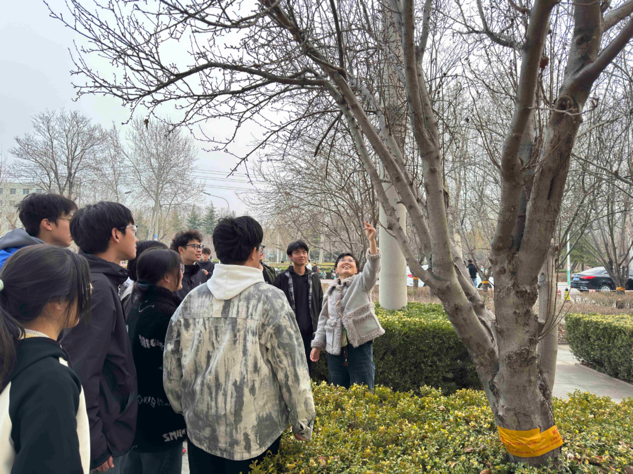 植此青绿,共听树木。活动中,李春燕老师结合海棠树、小叶黄杨等十余种树木实物,现场讲授植物分类特征、生态价值及经济用途,丰富了同学们在树木领域的专业知识储备,激发了同学们对自然的探索热情,强化了爱绿护绿的环保意识。