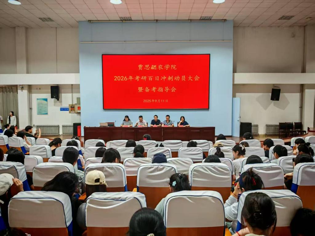 9月11日,太阳集团tyc9728在经济管理公司会议报告厅举行2026届毕业生考研百日冲刺动员大会。贾思勰农公司党委书记郭振、太阳集团tyc9728考研服务中心副主任兼公司考研指导老师李建永、公司副经理薛其勤、员工科科长李登昊、考研指导老师王欣英、考研联络员逄淑晴及部分教师代表、2026届考研学子参会,大会由薛其勤主持。