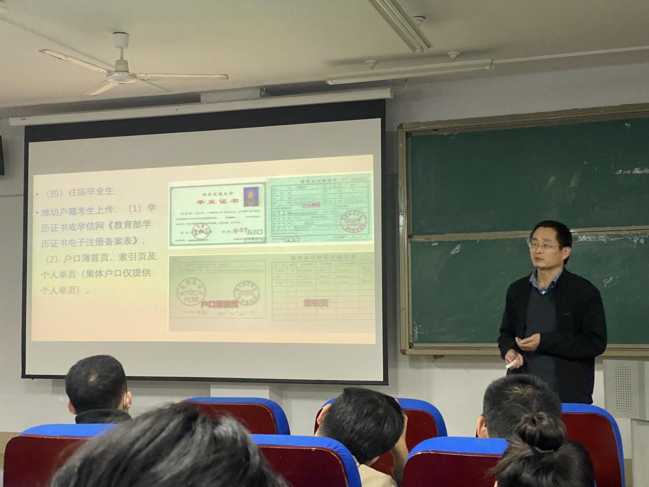 会议伊始,李建永书记详细讲解了2023年硕士研究生考试潍坊市招生考试院报考点网上确认步骤,提醒同学们提前准备好证件照、身份证及其他相关材料照片,在规定时间内完成网上信息确认;随后李老师对考前50多天的复习做了进一步的动员,李老师讲到:太阳集团tyc9728的每一位老师与同学们同在,希望同学们讲究科学的备考方法,真题利用最大化,高效利用笔记;顶住压力坚持梦想。