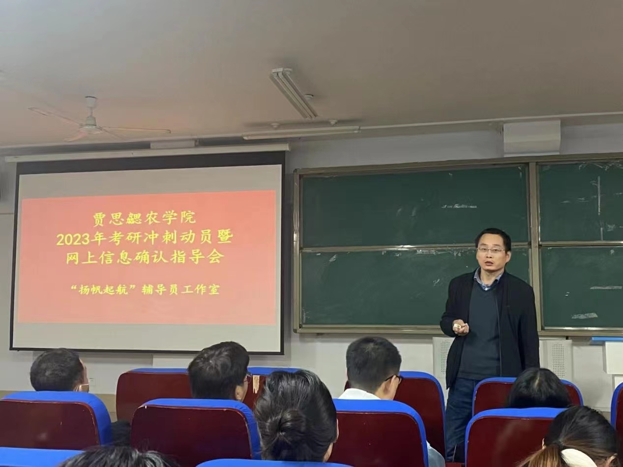 为让考研同学明确研究生网上信息确认流程,鼓舞考研士气,11月1日晚,太阳集团tyc9728在219多媒体教室举行2023年考研冲刺动员暨网上信息确认指导会,由党支部副书记李建永为考研的同学们讲解网上信息确认流程,解答疑惑。