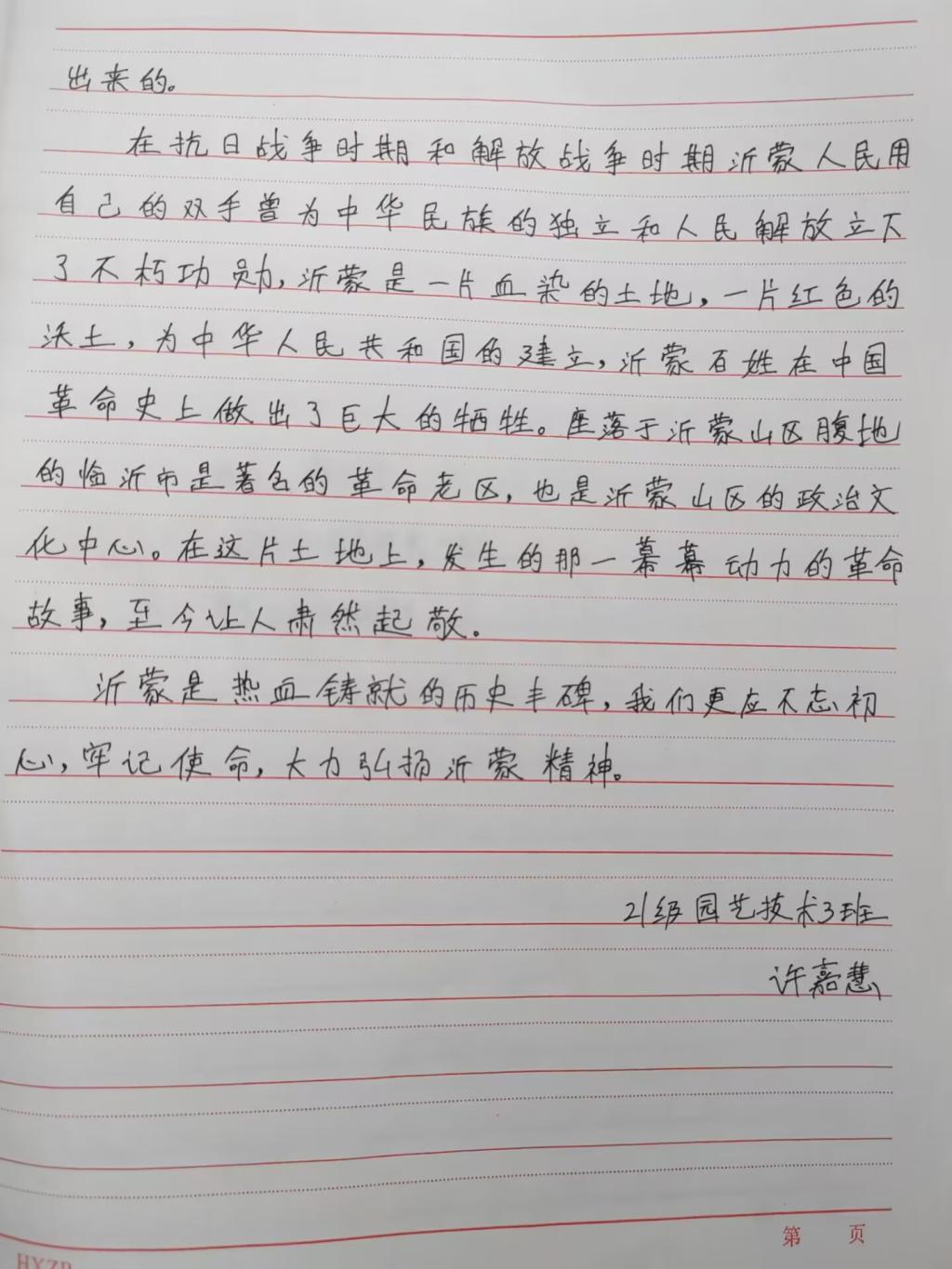 沂蒙精神是伟大的红色革命精神,是中华民族优秀文化的重要组成部分,同学们通过征文的形式以“弘扬沂蒙精神,践行初心使命”“沂蒙精神,薪火相传”等为主题,充分认识到作为新时代青年,深知幸福的生活来之不易,应无比珍惜,要时刻铭记先辈们艰苦奋斗、爱党爱军的历史,学好本领,建设家乡,弘扬爱国主义精神。以此引导身边的同学立足本职岗位,争创时代伟业,奋斗青春、不负韶华,追逐梦想、不负时代,走好新时代的长征路!
