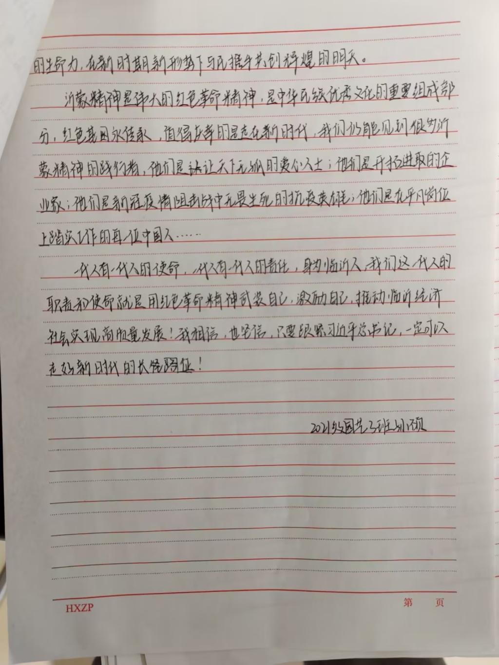 此次征文活动的开展,使同学们对红色文化有了更深入的了解,也极大的激发了同学们的爱国热情,岁月的车轮在不停地转动,红色故事在不停的传唱,革命先烈会永远的留在我们的心中!一代人有一代人的使命,一代人有一代人的责任,身为新时代青年,我们要用红色革命精神武装自己,激励自己,努力为实现中华民族伟大复兴做出自己的贡献。