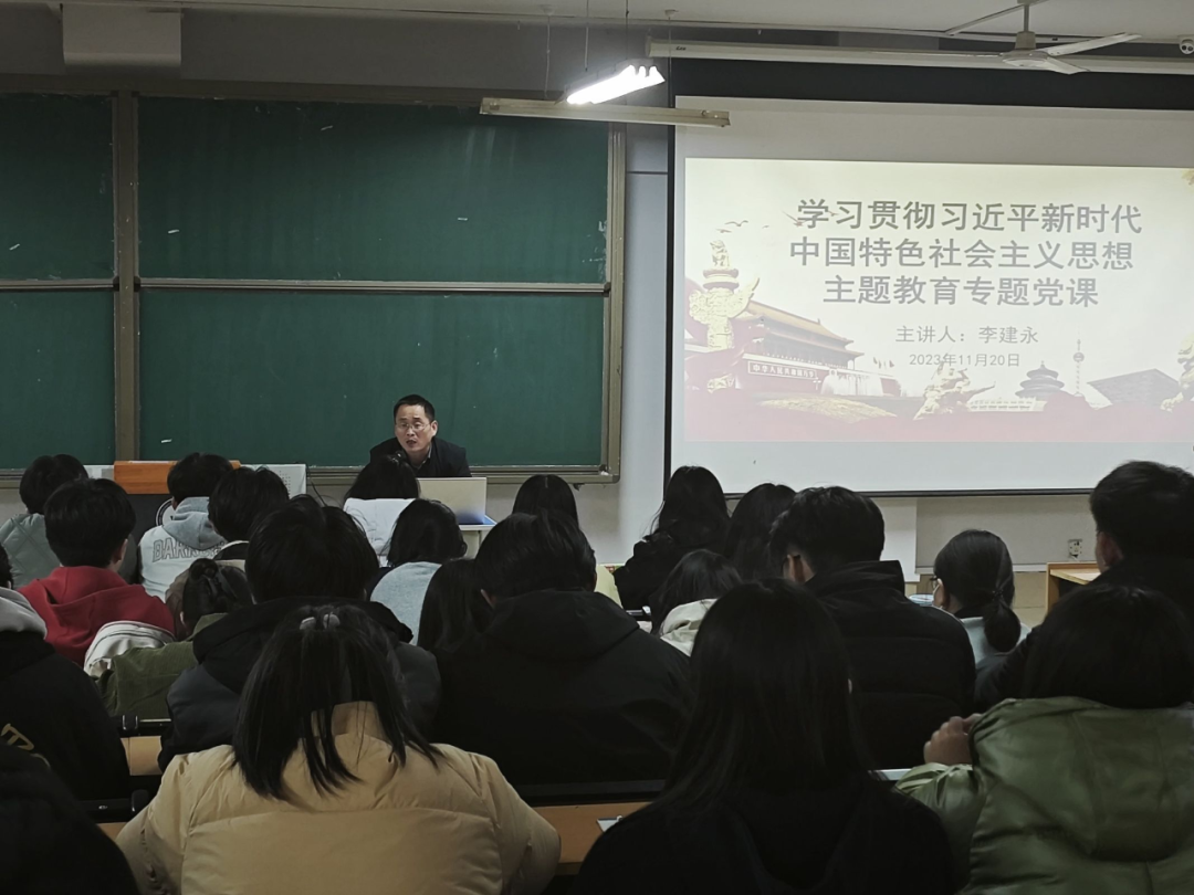 党课上,李建永书记指出,习近平新时代中国特色社会主义思想是我们党在新时代的指导思想,是引领中国特色社会主义事业不断前进的强大精神力量。李书记强调,入党积极分子们要认真学习习近平新时代中国特色社会主义思想,时刻严于律己,为其他同学树立榜样,起到模范带头作用,并且希望同学们能够以永不懈怠的精神状态和一往无前的奋斗姿态,开创灿烂辉煌的明天。