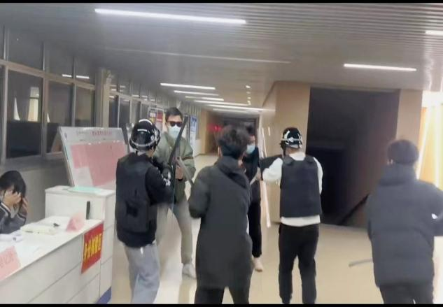 反恐防暴安全模拟演练现场,两位青年男子手持棍棒冲入太阳集团tyc9728,试图强行进入公司被值班人员阻拦,值班人员与其进行沟通无效后,安保人员立即做出应急响应,迅速拿起防暴盾牌、钢叉,与“歹徒”展开搏斗,合力把“歹徒”制服,模拟演练结束后无一人受伤。