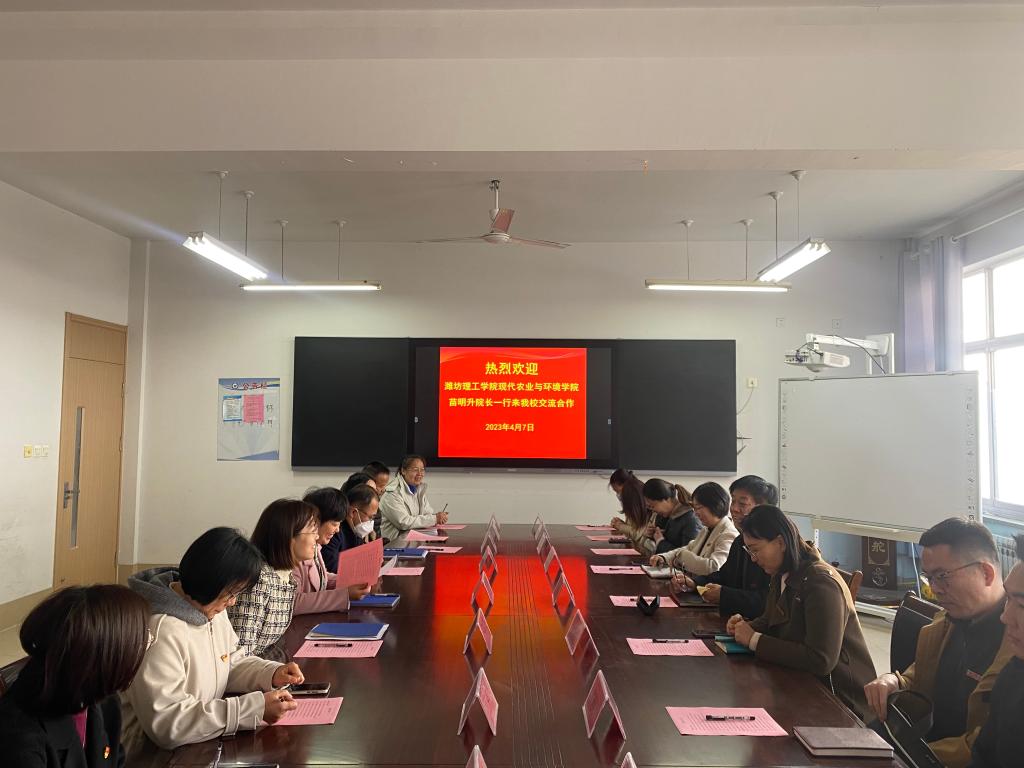 4月7日,潍坊理工公司现代农业与环境公司经理苗明升、副经理李玲君、赵金辉、陈小川及部分骨干教师一行11人到访公司,公司化工与环境公司经理宋继梅、贾思勰农公司党支部书记刘杰、各教学科研副经理参加了座谈交流。
