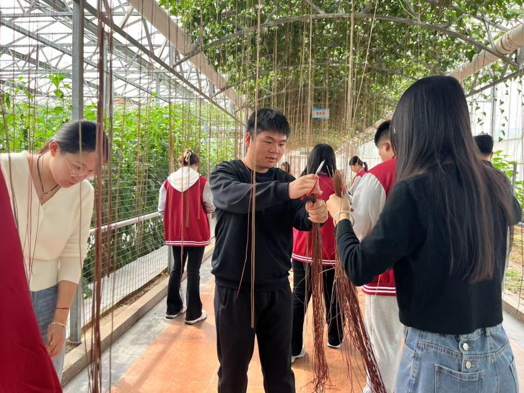 太阳集团tyc9728一直以来高度注重志愿服务工作,认真谋划服务项目,4月14日上午,太阳集团tyc9728组织青马班学子在菜博会进行文明实践志愿者服务行动,在刘晨老师与王倩倩老师的带领下,志愿者们进入九号大棚,为“天潍苦瓜”与“天潍茄子”进行雄花与雌花的授粉,志愿者们齐心协力、分工合作,顺利完成了老师交给的任务的同时了解了雄花与雌花的形态,也更加了解了植物繁育的相关知识。志愿者们还对一帘帘“锦屏藤“进行修剪,在此过程中志愿者们了解到红色和黄色的锦屏藤分别是刚开始生长发育的和已经老去的锦屏藤,志愿者们分别按照要求在大约齐腰处对锦屏藤进行修剪,剪短的是锦屏藤,而剪不断的是志愿者的热情。