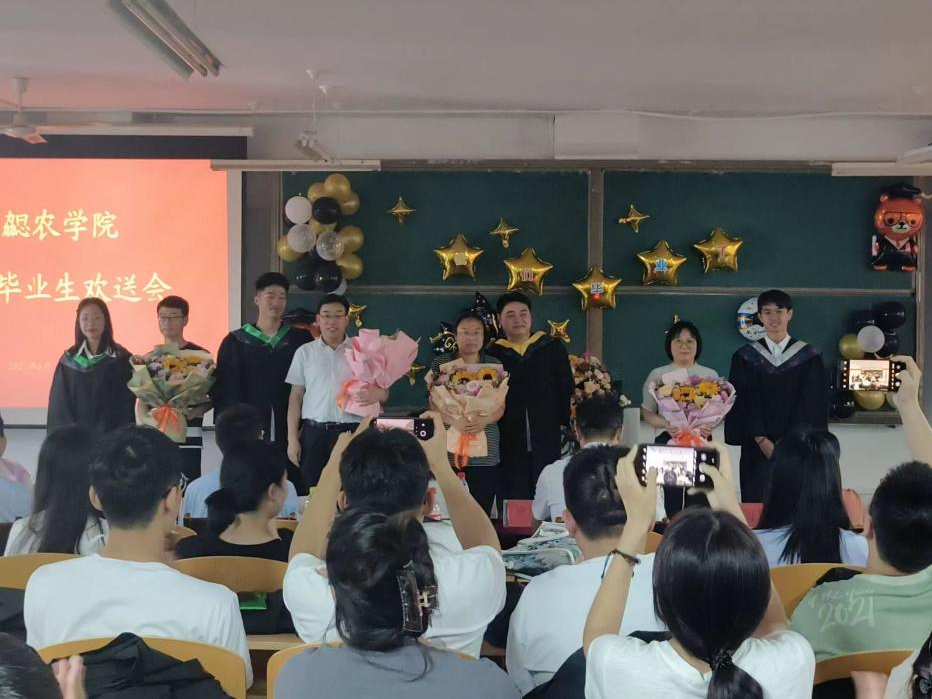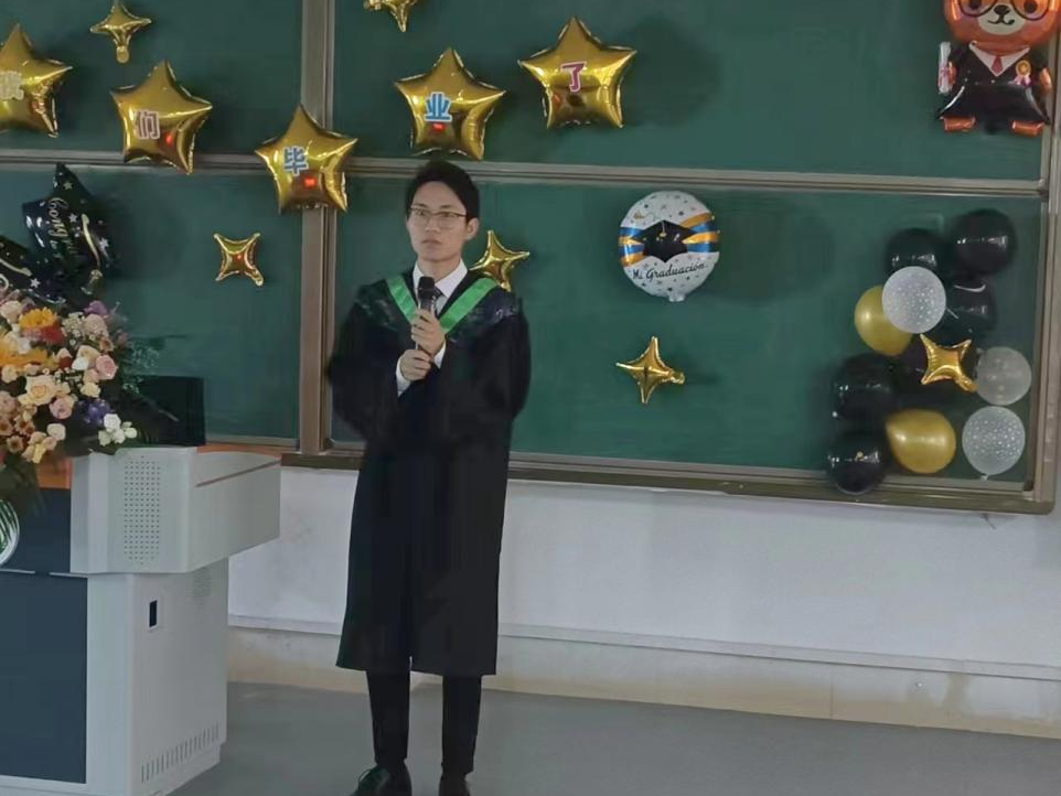 优秀毕业生代表于益同学进行了发言,于益同学向所有老师和同学表示深深的谢意和不舍,回顾过往四年的老员工活,感恩农公司认真负责的老师们、志趣相投的同学们。岁月不居,他们也将铭记“修身、博学、求索、笃行”的校训,奔向属于自己的诗和远方。未来他们一定会乘时代春风,在复杂多变的社会漩涡上纵横驰骋,在奔腾翻涌的人生波涛中激流勇进!