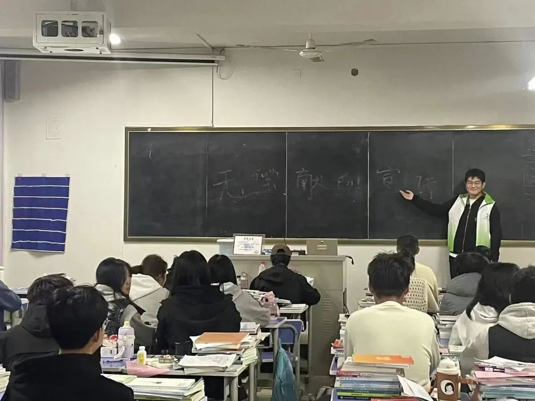 活动过程中,志愿者们通过PPT、图片展示、视频播放等方式,绘声绘色地讲解了无偿献血应注意的事项和准备工作,以及无偿献血的积极意义等。在互动环节中,志愿者们还解答了同学们关于献血方面的各类疑惑,各班级同学都认真聆听志愿者的宣讲,纷纷表示会参加到无偿献血队伍中来,为挽救生命、奉献爱心贡献自己的力量。