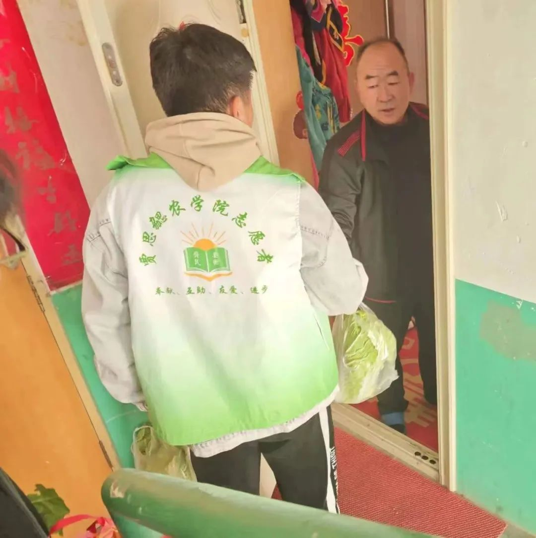 在此次活动中,同学们积极参与,与老师共同将白菜进行分装、搬运,并将分装完成的白菜依次送到公寓内各家各户。同学们每敲开一户人家,都是一份温暖的送达。