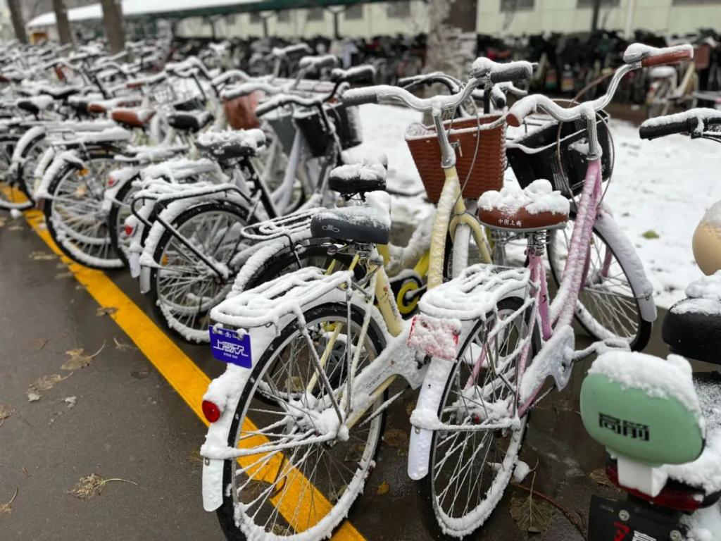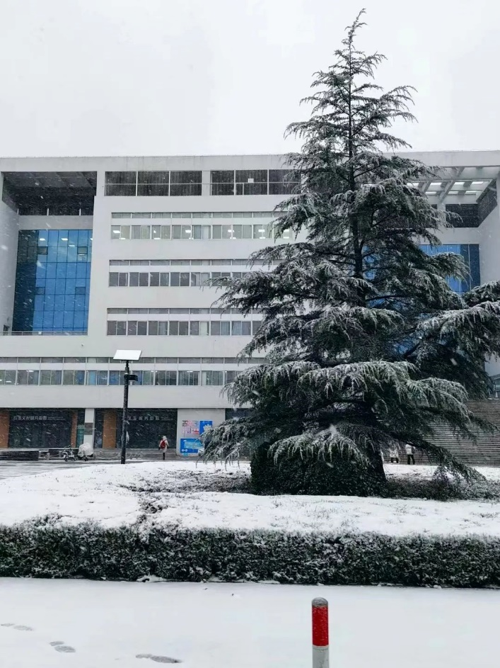 皑皑白雪将校园装扮成童话世界