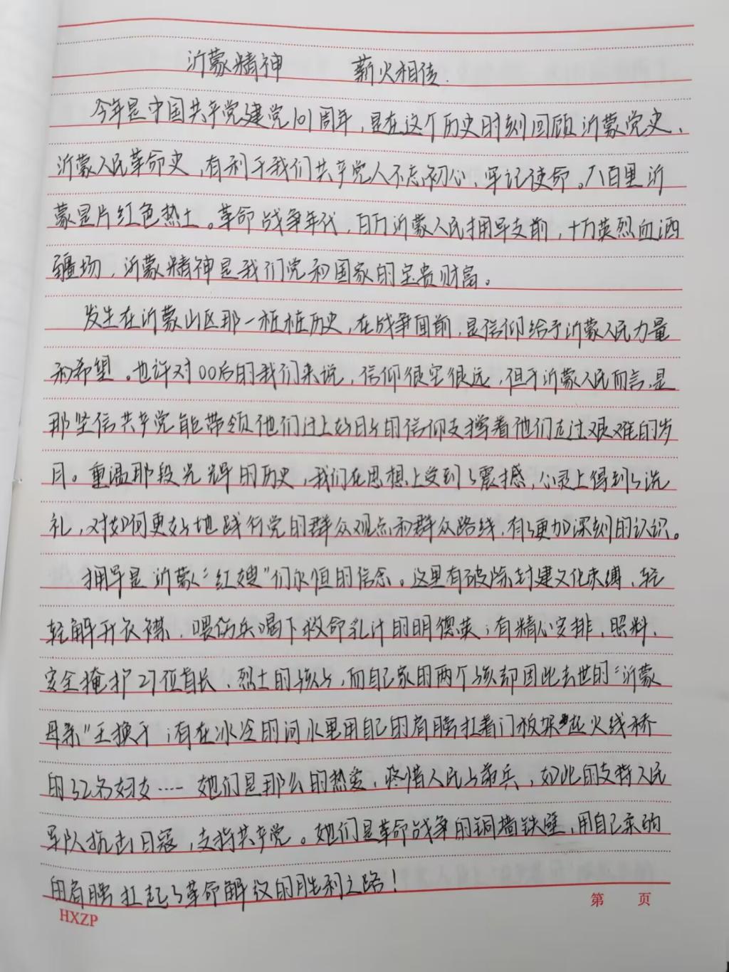 沂蒙精神是伟大的红色革命精神,是中华民族优秀文化的重要组成部分,同学们通过征文的形式以“弘扬沂蒙精神,践行初心使命”“沂蒙精神,薪火相传”等为主题,充分认识到作为新时代青年,深知幸福的生活来之不易,应无比珍惜,要时刻铭记先辈们艰苦奋斗、爱党爱军的历史,学好本领,建设家乡,弘扬爱国主义精神。以此引导身边的同学立足本职岗位,争创时代伟业,奋斗青春、不负韶华,追逐梦想、不负时代,走好新时代的长征路!