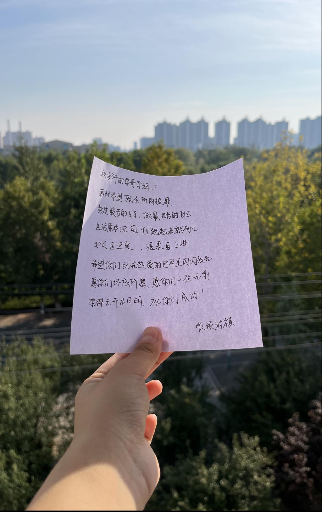 希望通过这次活动,可以给这条漫漫考研路增添一些色彩,让考研学子的冲刺阶段多一些乐趣,使他们感受到温暖、真挚的祝福,也愿每一位即将考研的学子梦想成真、未来可期。
