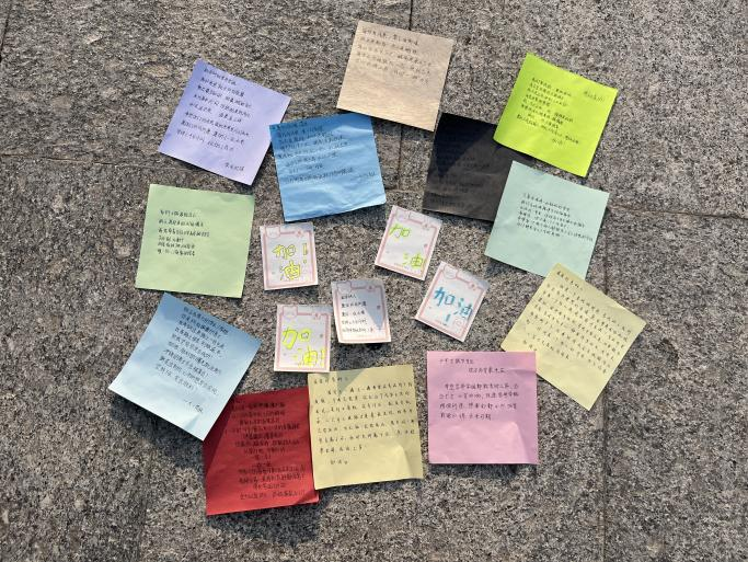 每一位参与其中的员工都认真的把自己的心里话写在了卡纸上,五颜六色的卡纸上,风格迥异的字体和内容在对每一位考研人表达真诚祝福的同时也鼓励了同学们自己。希望通过这样的方式可以鼓舞每一位考研学子,在最后冲刺阶段全力以赴。