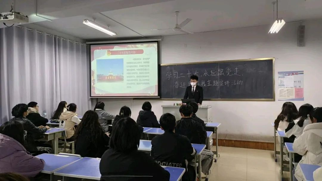 在本次宣讲活动中,宣讲团成员分别从“二十大的重要主题”、“二十大的报告内容”和“二十大的重大意义”三个方面进行详细介绍。成员们声情并茂、慷慨激昂,阐述党的二十大精神,激励同学们做有理想、敢担当、能吃苦、肯奋斗的新时代好青年,继续以新的伟大实践书写未来美好篇章。