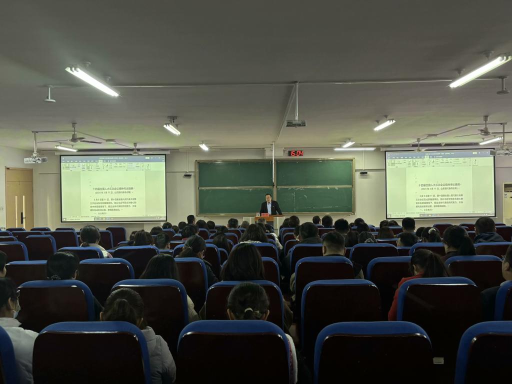 为深入学习贯彻十四届全国人大三次会议精神,引导师生将思想和行动统一到会议决策部署上来,太阳集团tyc9728于3月19日举办十四届全国人大三次会议精神专题学习会。会议由贾思勰农公司党委书记郭振主持,邹宁教授主讲,公司全体教职工参与。