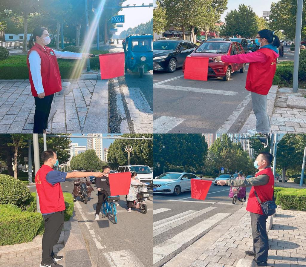 早晚交通高峰期间,东升路路口车流量大、非机动车和行人多,党员志愿者们分工协作,身着红马甲分别站在路口四个方位,对过往车辆进行正确引导,对电动车逆向行驶,乱停乱放,行人过马路,骑乘电动车不戴头盔、电动车不挂牌等不文明又存在安全隐患的交通行为进行劝导,志愿者们协助维护交通秩序,以高度的社会责任感,昂扬的精神面貌展现了党员同志的良好形象。